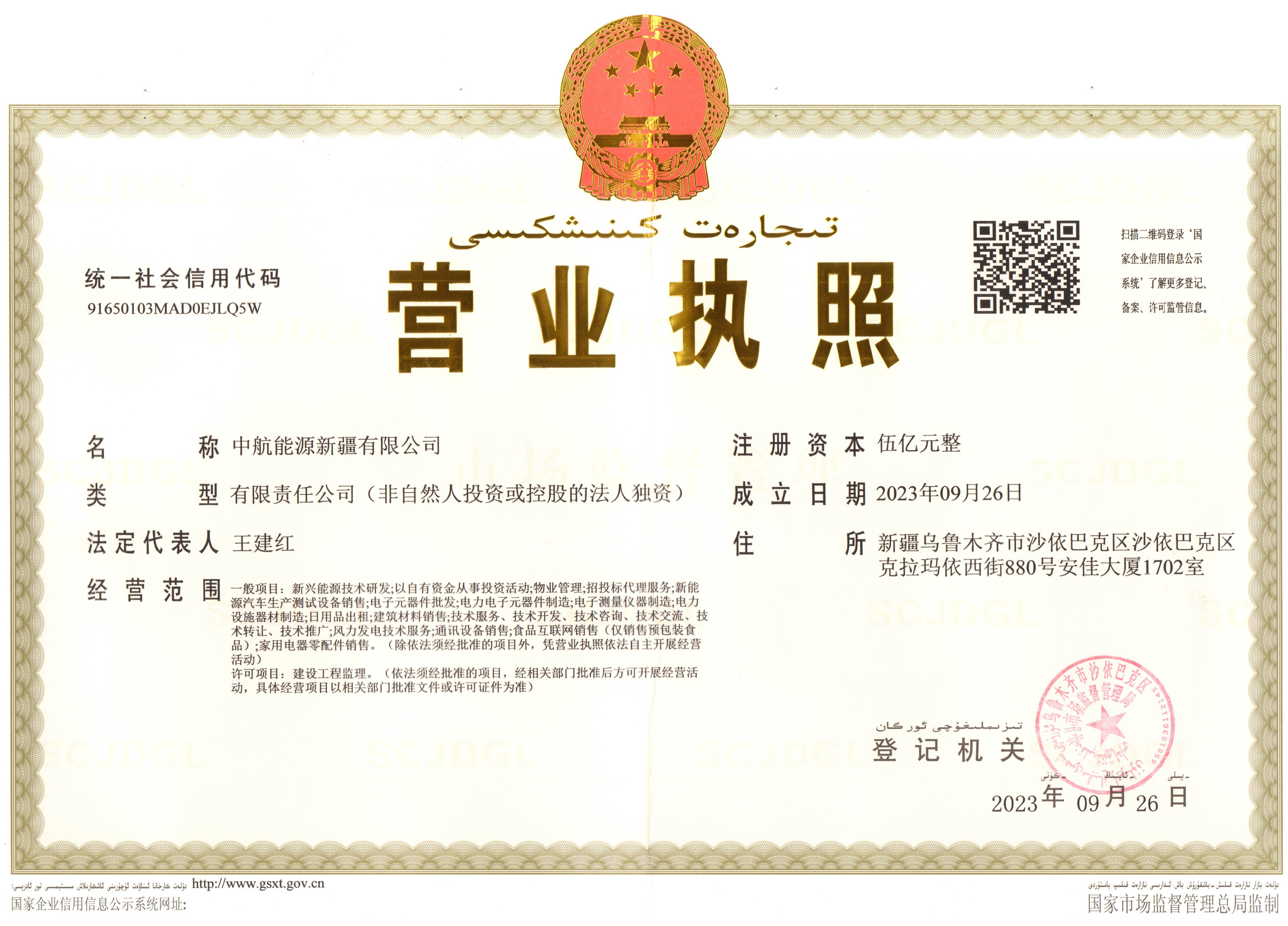 中航能源新疆有限公司成立于2023年09月26日,是华体会官方版网站登录入口响应国家“一带一路”倡议,构建专业化合作,推动能源技术发展和管理经验的交流平台。公司积极参与并支持国家关于新疆地区能源开发的政策措施,为推动区域绿色发展、促进社会经济可持续增长做出积极贡献。