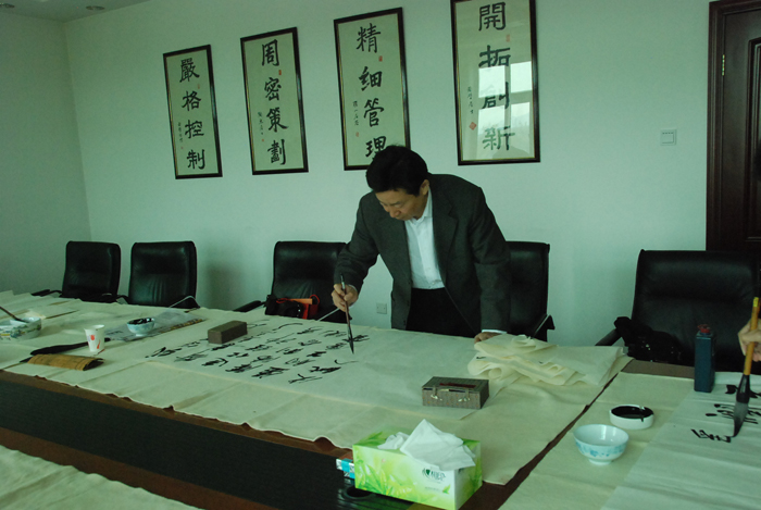 为弘扬传统文化,丰富员工业余生活,5月6日上午,华体会官方版网站登录入口有限公司举办了首届书画艺术学习交流活动。本次活动邀请了中国书法家协会会员孟云飞博士、中国书法家协会理事张铜彦先生、中国书法家协会编辑出版委员会副主任王荣生教授、人民艺术家协会理事于瑛先生等国内知名书画大师,各位书画大师在活动现场进行了艺术创作表演,挥毫泼墨,交流技艺,为华体会官方版网站登录入口有限公司留下了数十副墨宝,还对部分员工的书画作品进行了悉心指导。公司员工现场欣赏了书画大师的艺术创作,并聆听了有关书画艺术鉴赏知识的介绍,部分员工还在活动现场进行创作,听取书画大师的讲解示范和点评。