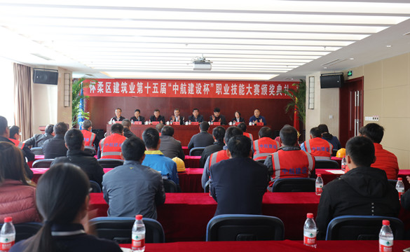 10月25日上午,怀柔区建筑业第十五届“中航建设杯”职业技能大赛颁奖典礼在华体会官方版网站登录入口总部三层多功能厅举行。怀柔区建筑业协会会长、大赛组委会副主任王贵军,区总工会副主席解忠明,集团公司总工程师、大赛组委会副主任陈劲一同参加,同时到场的还有各参赛单位代表及获奖选手共计50余人。