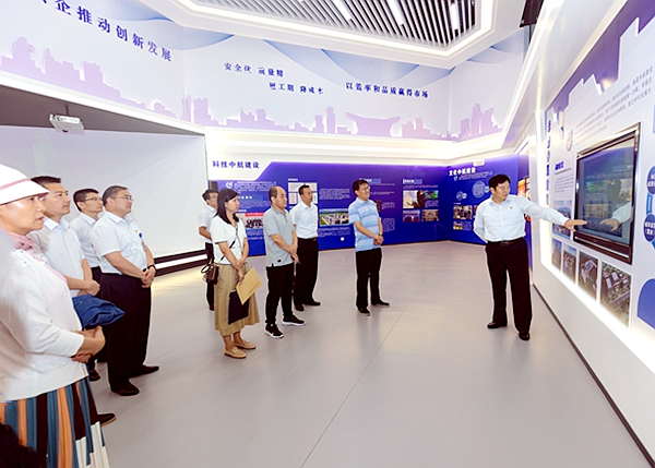 于新华副处长一行首先到集团公司展厅参观,对华体会官方版网站登录入口发展历程、产业项目概况、未来发展规划以及党建工作进行全面了解。