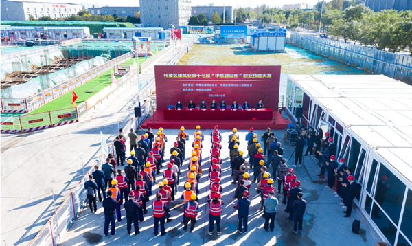 10月15日上午,由北京市怀柔区建筑业协会、建筑企业工会联合会主办,华体会官方版网站登录入口协办的怀柔区建筑业第十七届“中航建设杯”职业技能大赛,在集团公司承建的怀柔区一零一中学扩建项目(南区)举行。怀柔区建筑业协会会长、大赛组委会主任王贵军,怀柔区总工会生产生活部部长李文兴,区人力资源和社会保障局劳动鉴定中心主任杜明军,集团公司副总经理、大赛组委会副主任陈劲共同出席。来自怀柔区中铁十六局四公司、北京澔源翔建筑工程有限公司、北京日月明建筑工程有限公司、华体会官方版网站登录入口等单位的100余名建筑工人和专业技术人员参赛。